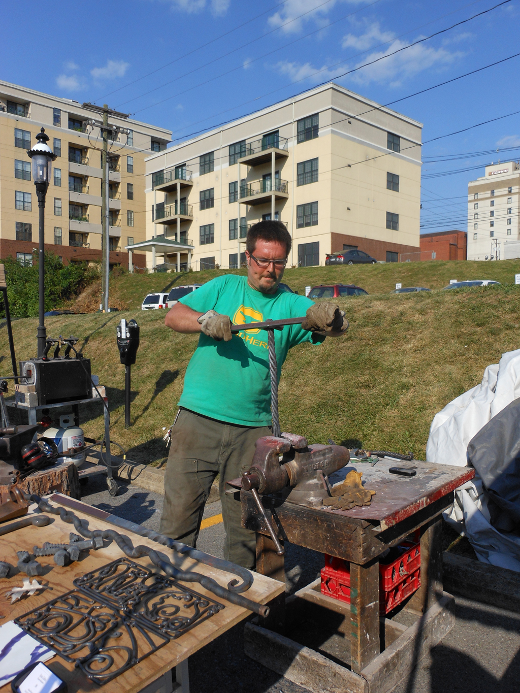 From June 8-10, I conducted live blacksmithing demonstrations as part of the Arts Alive on the River Festival at Hazel Ruby McQuain Park in Morgantown, WV. The festival featured a terrific lineup of visual and performing artists, top-notch musical acts, and fine local food and beverages. The weather was beautiful, the attendees were enthusiastic, and Arts Alive proved to be a resounding success. I had an awesome time demonstrating and I look forward to doing this again.