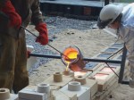 - Filling the crucible with molten iron