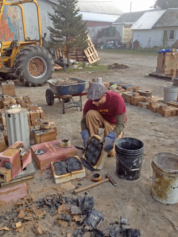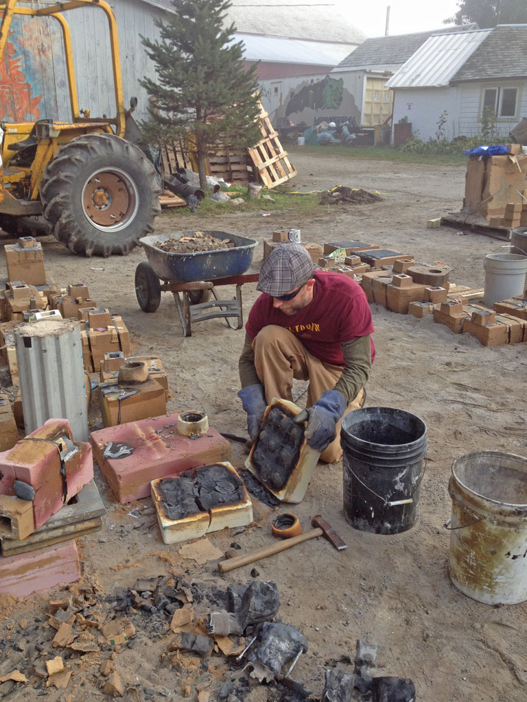 7th annual intercollegiate iron pour at salem art works Original size at 768 × 1024 Leave a comment Jeremy breaking out molds the next morning