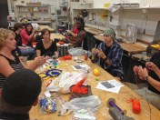 Hummel’s daughter Molly Sedensky instructing sculpture students on crochet techniques