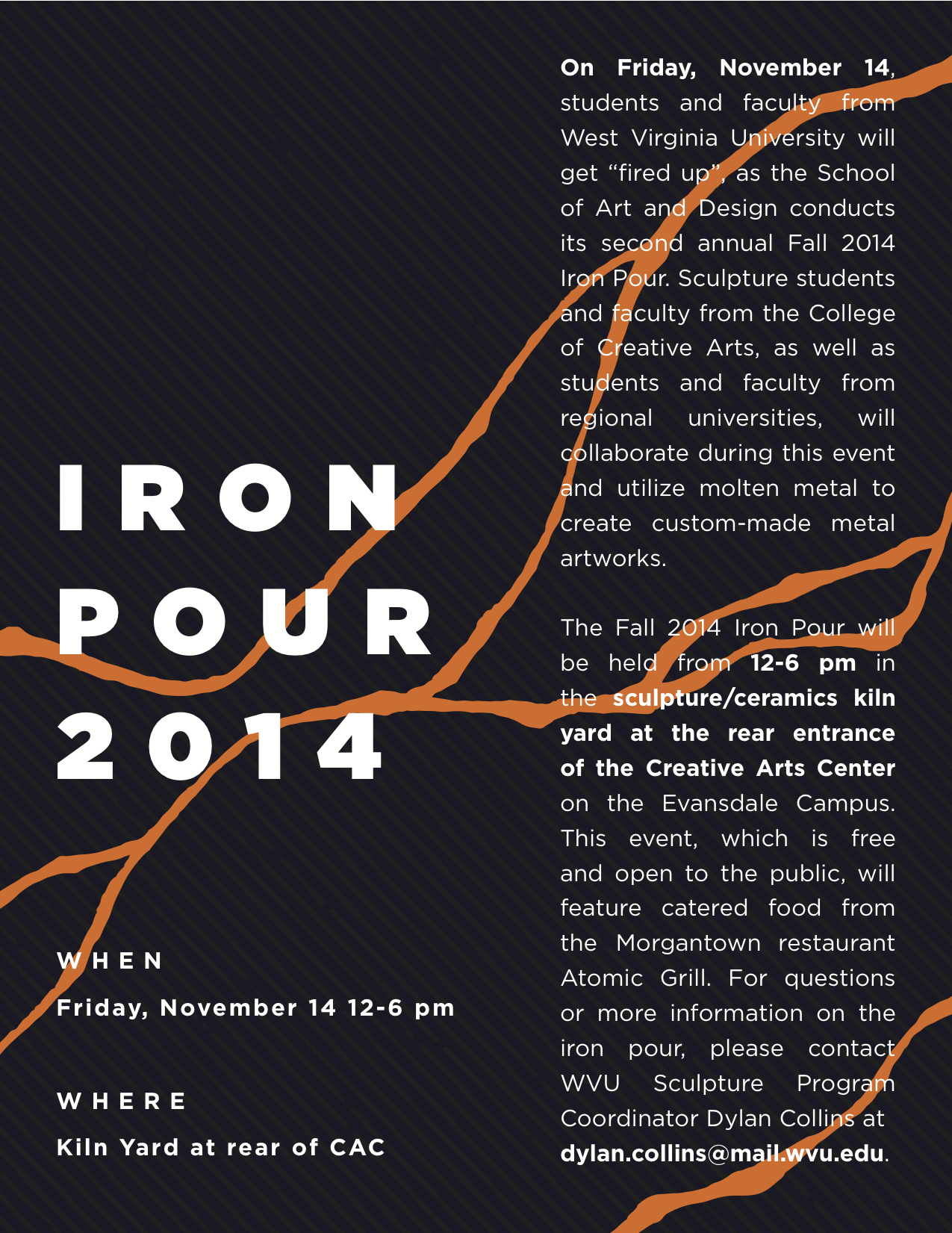 fall 2014 west virginia collegiate iron pours Original size at 1275 × 1651 Leave a comment WVU iron pour poster