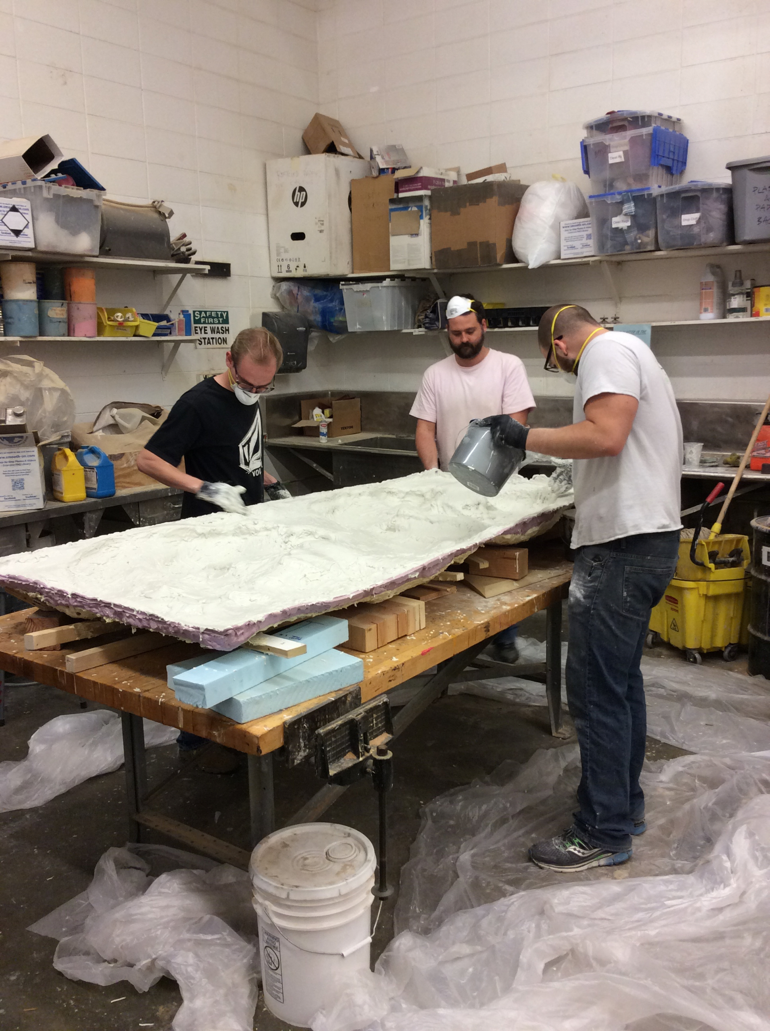 eastern pylons project Original size at 1536 × 2056 Leave a comment Students Matt Jarret, Cornelius Hugo, and Kevin Brennan casting pylon panel in sculpture studio
