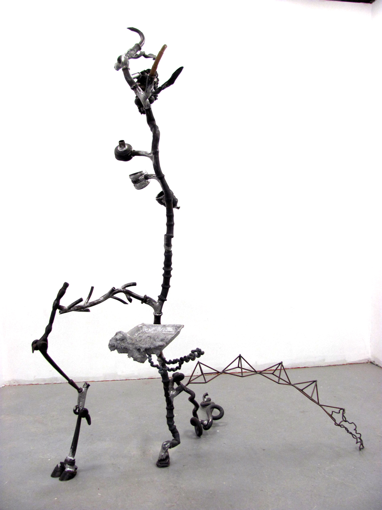 I set wooden posts in concrete and built the final birdhouse structure with my friend Aaron Lutz, a WVU forestry program student working at North this year with the AmeriCorps VISTA program. The completed piece contains approximately nine birdhouses, 33 steel bird panels, 33 steel items created by my sculpture students, and a stainless steel nameplate. This project gave my students and I the opportunity to collaborate with students, teachers, and administrators at North in a truly unique manner, and out of the things I did in this amazingly busy school year, this was probably the most enjoyable project to take on.