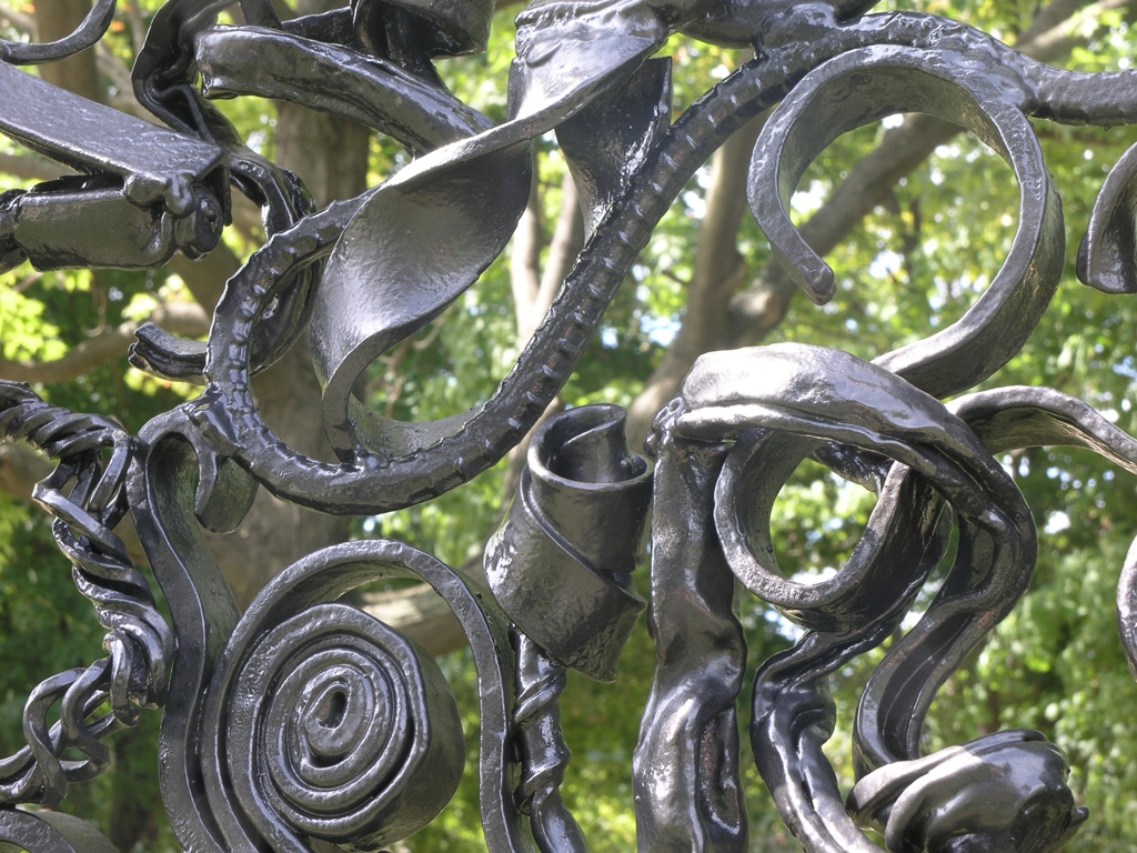 This page features both sculptural and functional pieces in forged steel. I initially developed a self-taught approach to blacksmithing when I was a sculpture grad student at Kent State University, and I later had the opportunity to explore functional smithing and architectural metalwork as a fabricator for Comunale Sculptural Concepts in Akron, Ohio. Forging continues to figure prominently in my studio work, and when time allows, I utilize these techniques to create functional artworks.