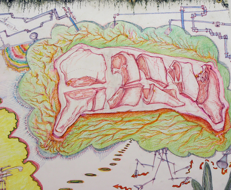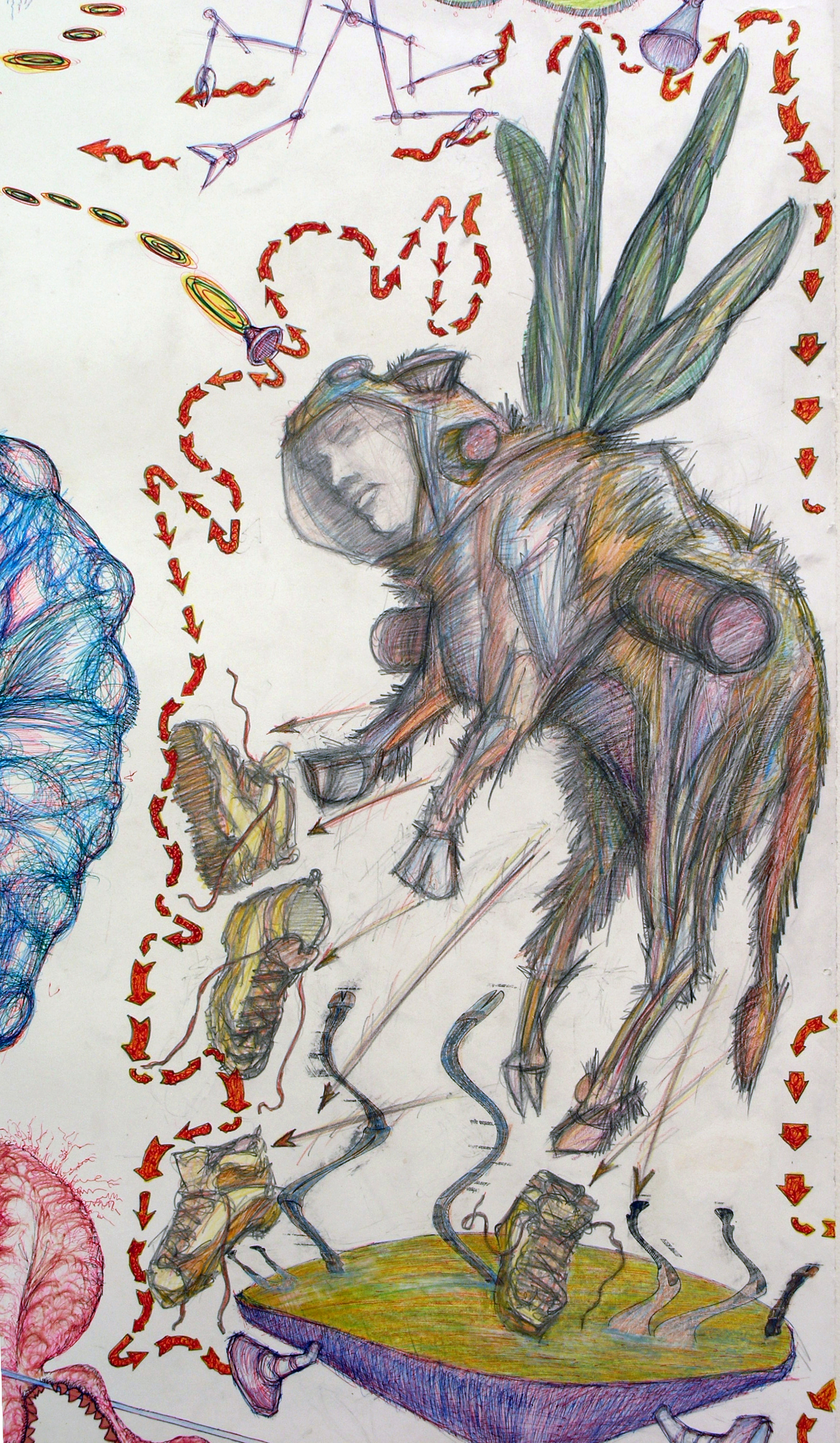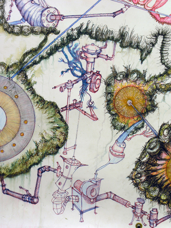 - Feed the meat machine (detail), mixed media on paper, 2009