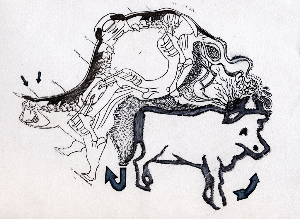 For example, I created sculptural anatomies that are ambiguous and fragmented, hybridizing human, animal, and mechanical traits in order to locate these bodies as a site of conflict. My drawings are imbued with humor, tension, and a sense of the uncanny so their infographic aspects are seen through the lens of a dream-like, broken narrative. Through these strategies, I draw attention to the complex relationships between organic bodies and the desires of the human made world.