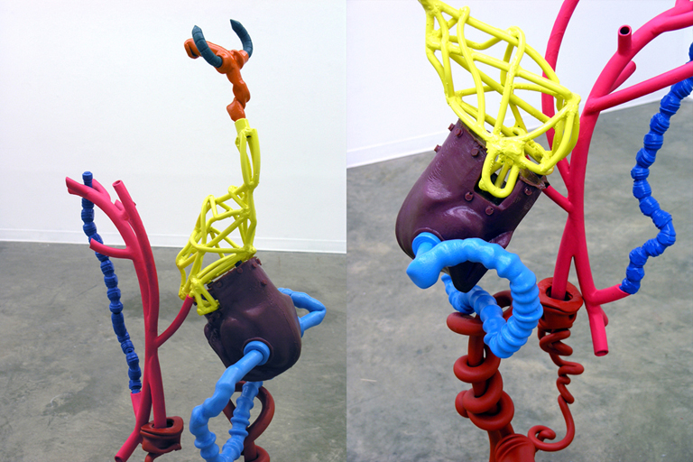 The Color Coded series is a body of studio work that references anatomical models, food chains, exploded view drawings, maps, and similar systems of organization and classification. I retain certain aspects of these references, like using color-coding to differentiate individual three-dimensional components, because this source material has a recognizable and appealing cultural authority. However, I take pleasure in manipulating other aspects of this diagrammatic language.