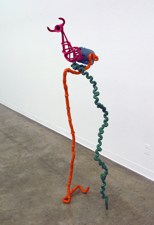- The tipsy greenhorn (detail), painted steel and cast rubber, 50” x 15” x18”, 2006